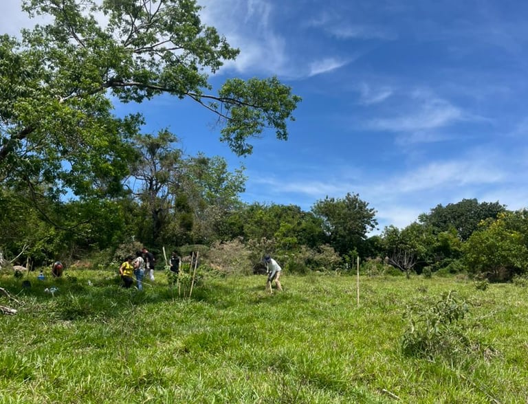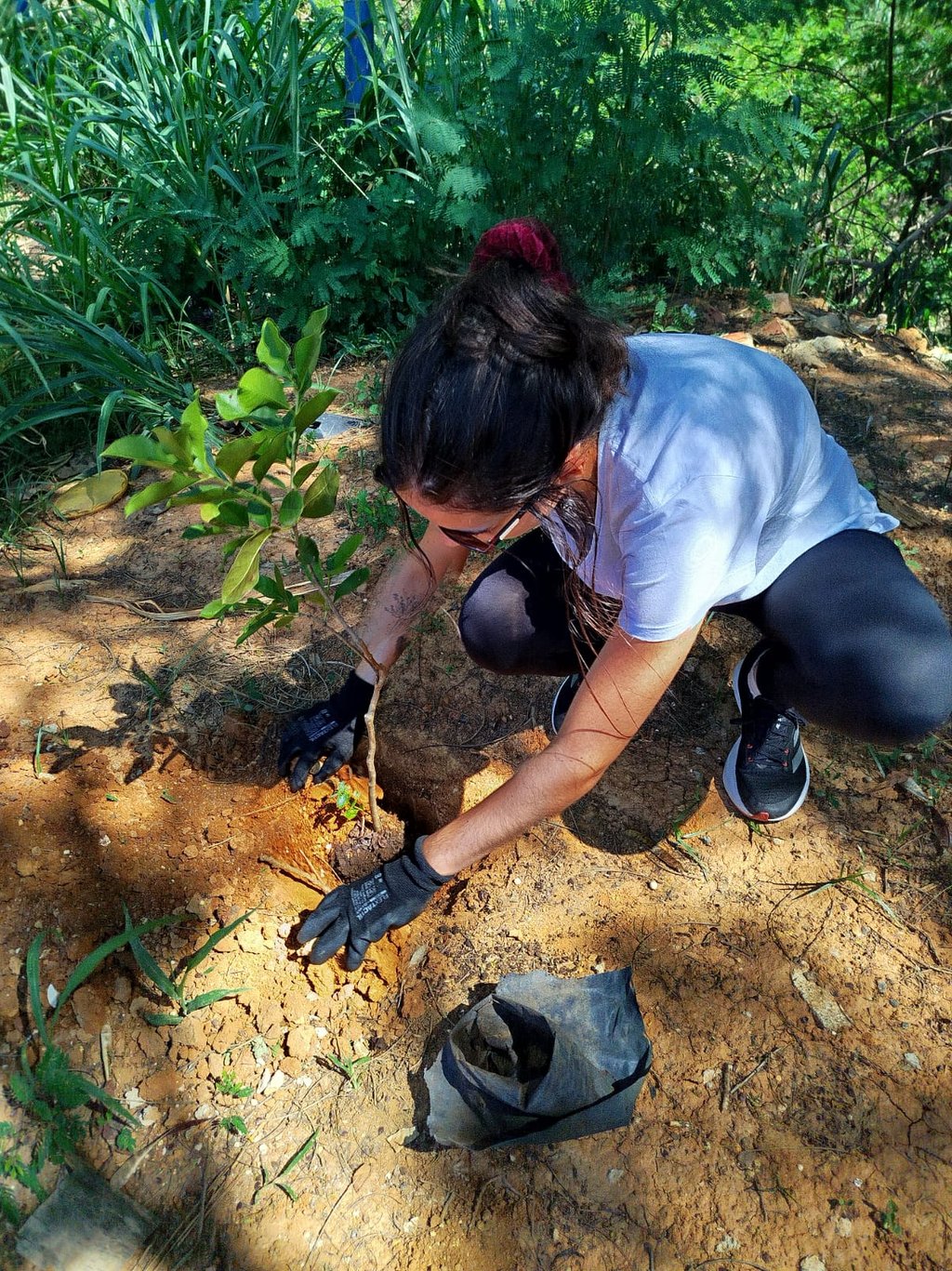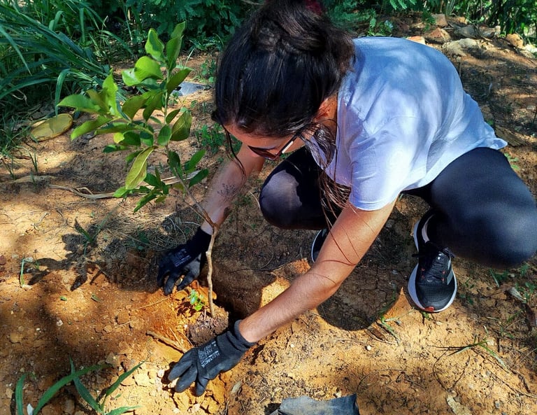 A ação foi realizada na data de 11/01/2025 e foram plantadas mudas como ipês, pitangueiras e outras.